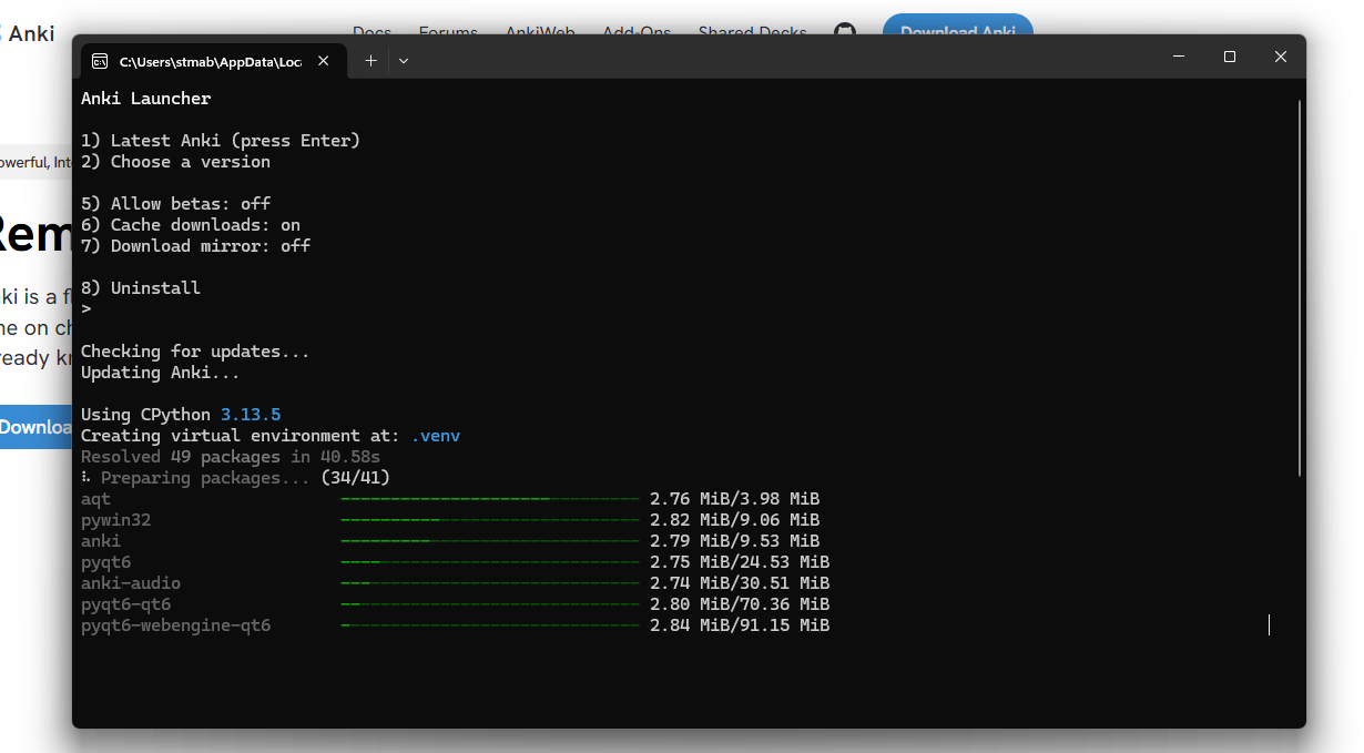 The most recent version before the launcher was added is 25.02.7 – Release 25.02.7 · ankitects/anki · GitHub . That should get you up and running for now until you can work out the launcher issues.