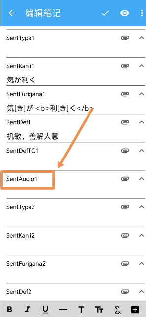 I see the example audio {{sentAudio1}} isn’t linked to the file, but I can still play it by clicking the purple button.