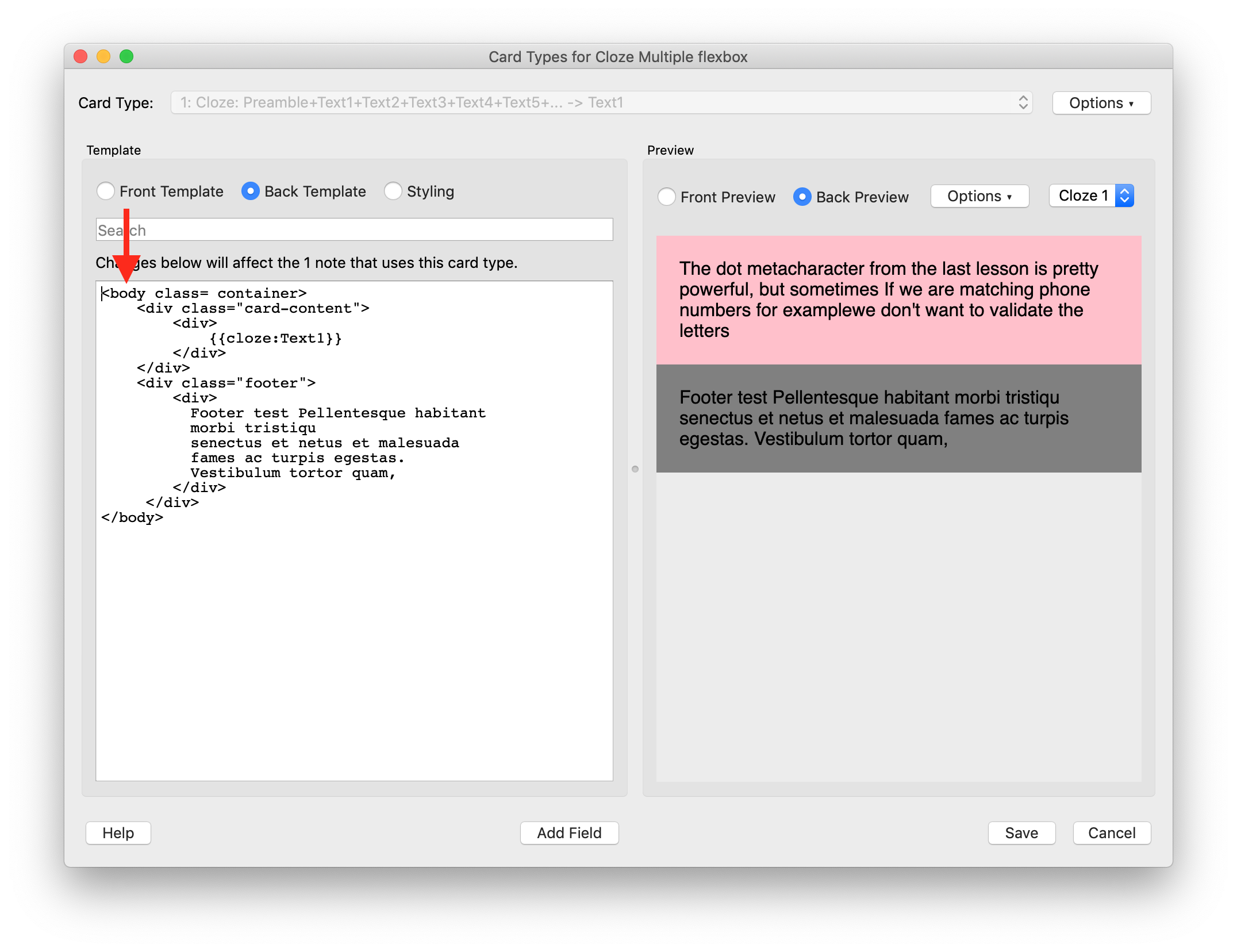 it looks like everything we put in the HTML of the card editor is, in fact being put into a div, with id= qa, which is itself contained into the actual body element of the HTML.