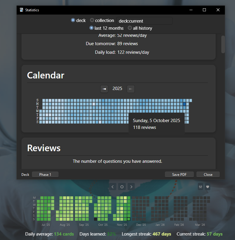 On Sunday 5th October I did my cards on my phone as I was overseas in NZL (I’m Australian). I only realised recently that I have lost my streak on my heatmap, due to what I assume is some sync error as when I look at my stats the calendar section has recorded that I did review 118 cards. I know it doesn’t seem like a big deal to some, but I was 467 days in and have continued after the fact hoping to resolve the issue somehow.