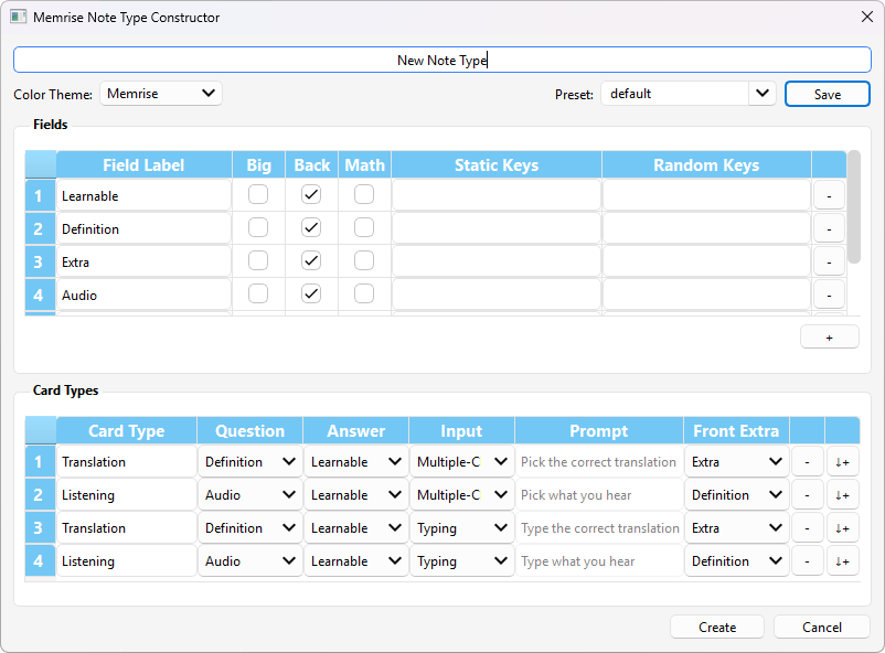 How can I have both typing and mcq for a word? Like in Memrise, a word will be shown with everything first and will be asked on mcq first and then typing later or tapping kind like that. Thanks